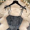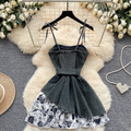 Niche Floral Patchwork Denim Slip Dress