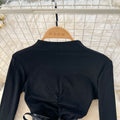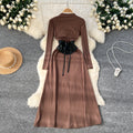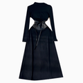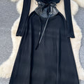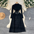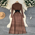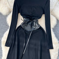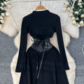 Niche Knitted Dress with PU Waistband