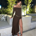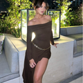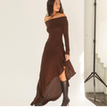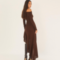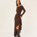Off-shoulder Brown Ruffled Dress