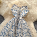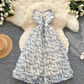 Off-shoulder Floral Printed Puffy Dress