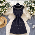 Rhinestone Beaded Sleeveless A-line Dress