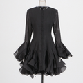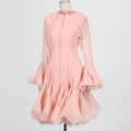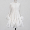 Round Collar Ruffled Patchwork Dress