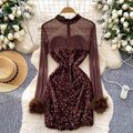 Sequined Mesh Patchwork Short Dress