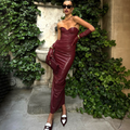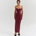 Sexy Wine Red Slim-fit PU Dress