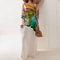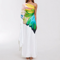 Slant Neckline Printed White Dress