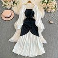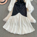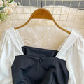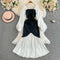Square Neckline Black&White Fishtail Dress