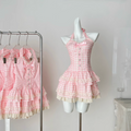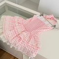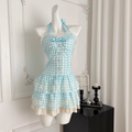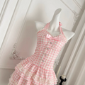 Sweetie Plaid Puffy Halter Dress
