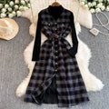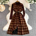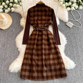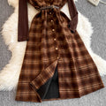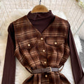 Turtleneck Sweater&Plaid Dress 2Pcs