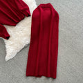 Turtleneck Sweater&Split Skirt 2Pcs