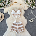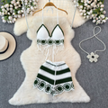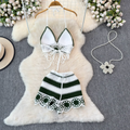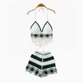 V-neck Fringed Bikini & Shorts 2Pcs