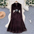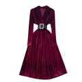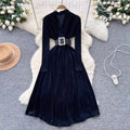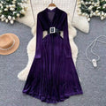 V-neck Suede Dress with Belt