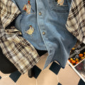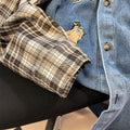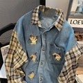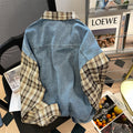 Vintage Denim Patchwork Plaid Shirt