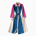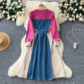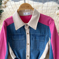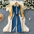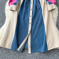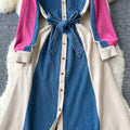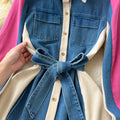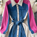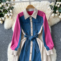 Vintage Lace-up Denim Patchwork Shirt Dress
