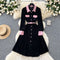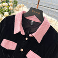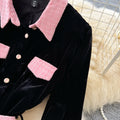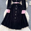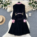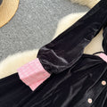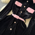 Vintage Lapeled Patchwork Black Dress
