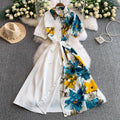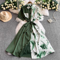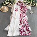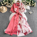 Vintage Printed A-line Shirt Dress