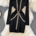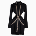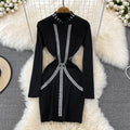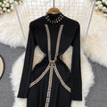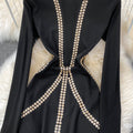 Vintage Rhinestone Studded Elastic Dress