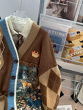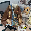 Vintage V-neck Patchwork Cardigan